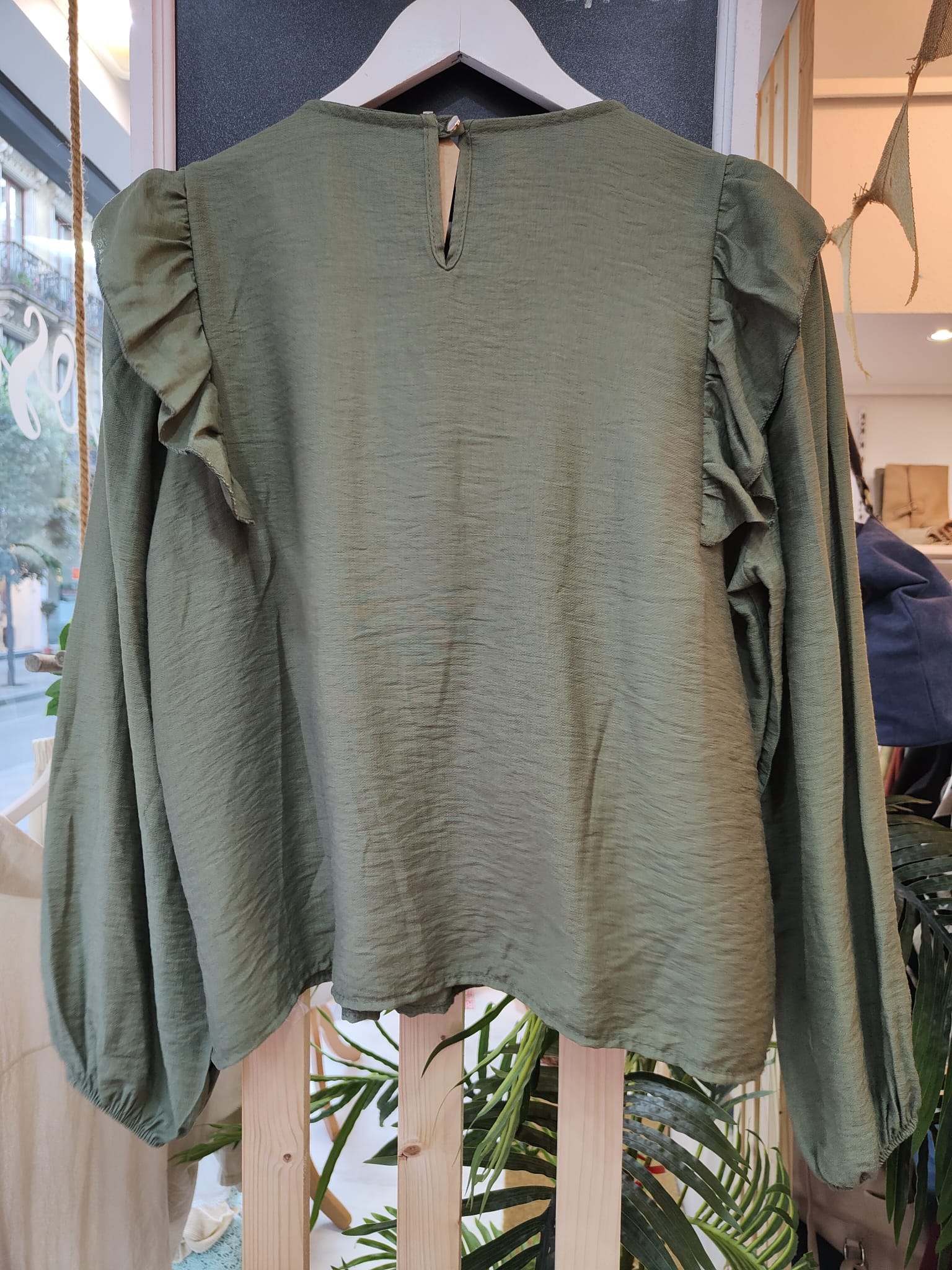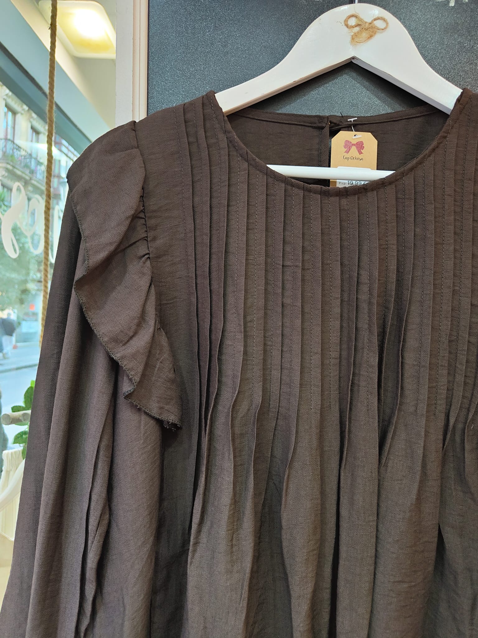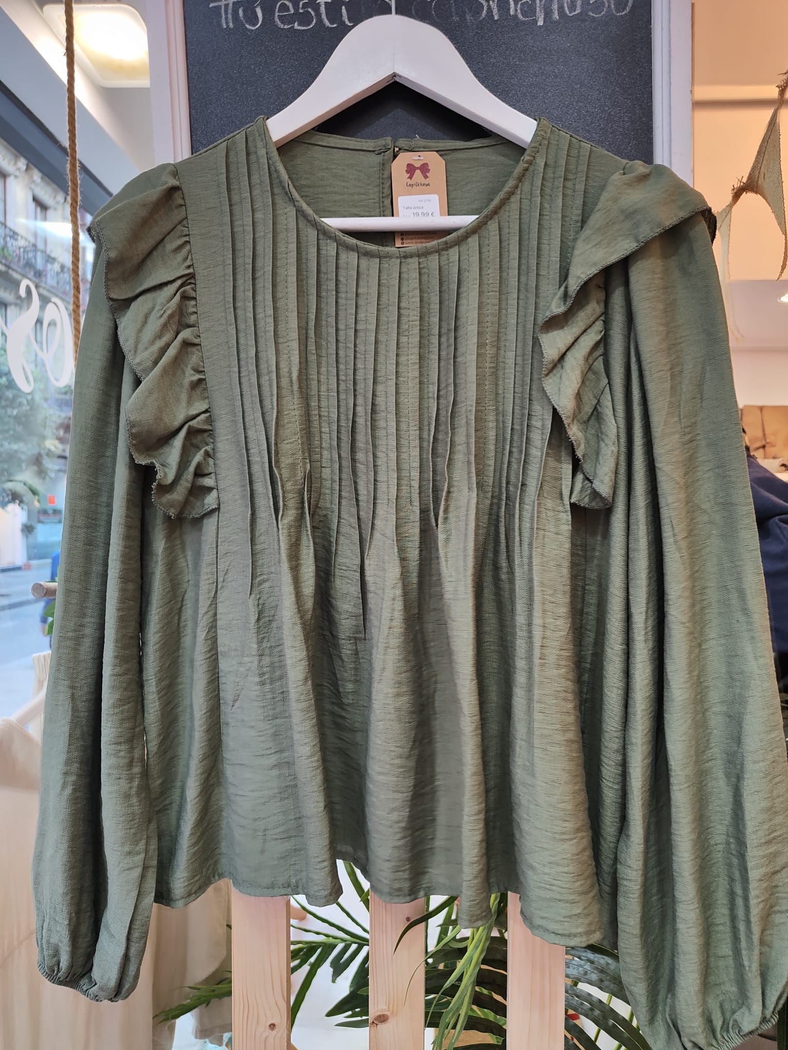 Camisa con volantes y plisada. En los colores de esta nueva temporada que entra y super bonitas para combinar con nuestros pantalones.