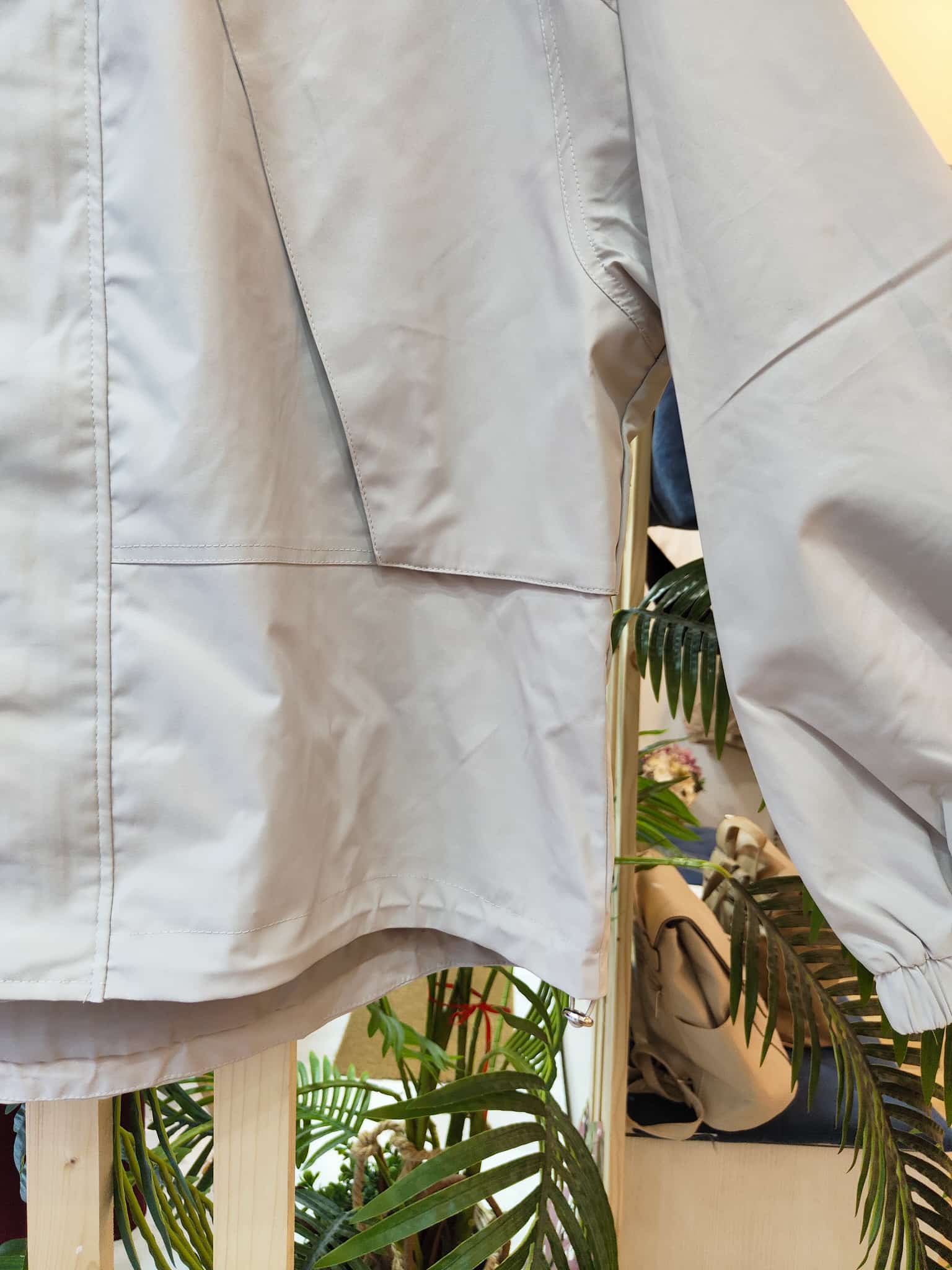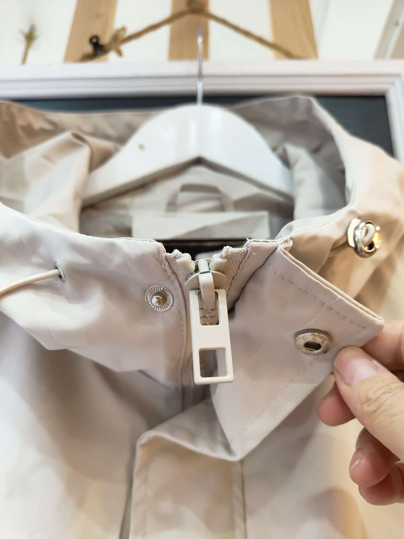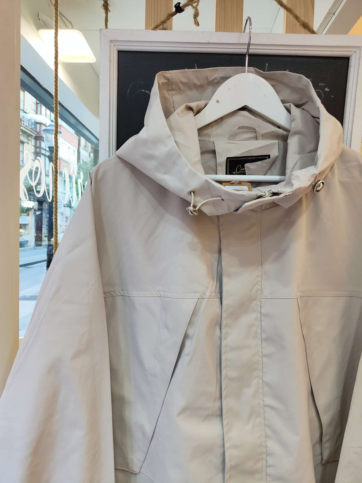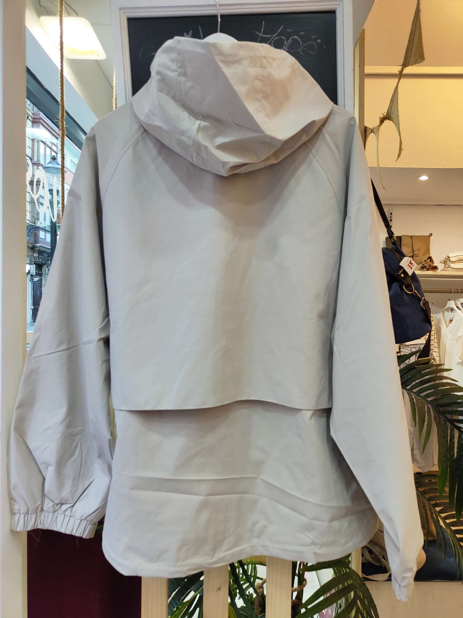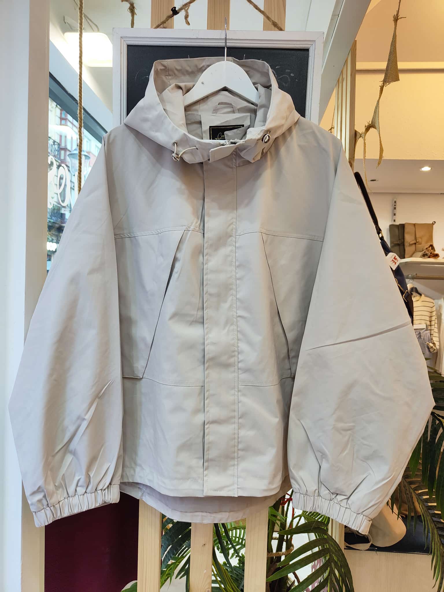 Parka ligera de corte oversize en tono beige claro, perfecta para entretiempo. Con capucha ajustable, cierre frontal oculto y bolsillos laterales, combina funcionalidad y estilo. Su diseño holgado y las mangas globo con puño elástico le dan un aire moderno y cómodo. Ideal para los días frescos con look casual o urbano.